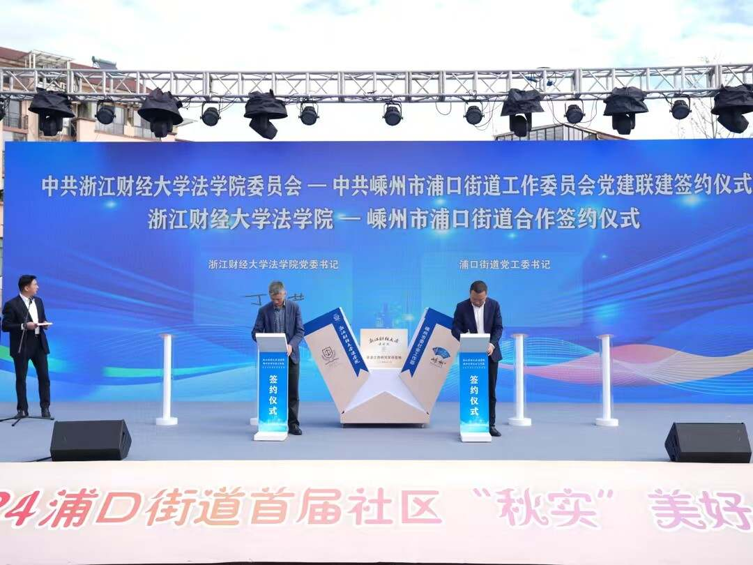 党委书记丁洪,副院长陈建胜,社会工作研究生教育中心执行主任施旦旦,绍兴市委社会工作部副部长王伟民,嵊州市委副书记、社会工作部部长余丹,组织部、社工部、民政局、住建局、浦口街道以及浦口街道各村社和“三方协同”工作代表、党建联建单位等参加了签约仪式。签约仪式由市委社会工作部常务副部长余雨松主持。