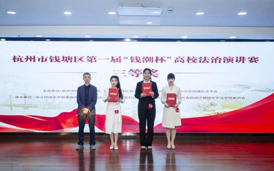 11月12日,由钱塘区司法局、区普法教育依法治理办公室、区法学会主办,浙江财经大学承办的钱塘区第一届“钱潮杯”高校法治演讲赛在我校下沙校区举行。杭州市司法局普法与法治社会建设处处长王海华、杭州市钱塘区委政法委委员、区司法局副局长胡瑾、杭州市钱塘区人民法院司法保障服务中心副主任高源、杭州职业技术澳门六合彩开奖记录资料
