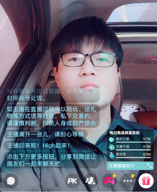 本科生第一党支部书记王龙辉参与学校“战‘疫’情,在一起”网络直播。)