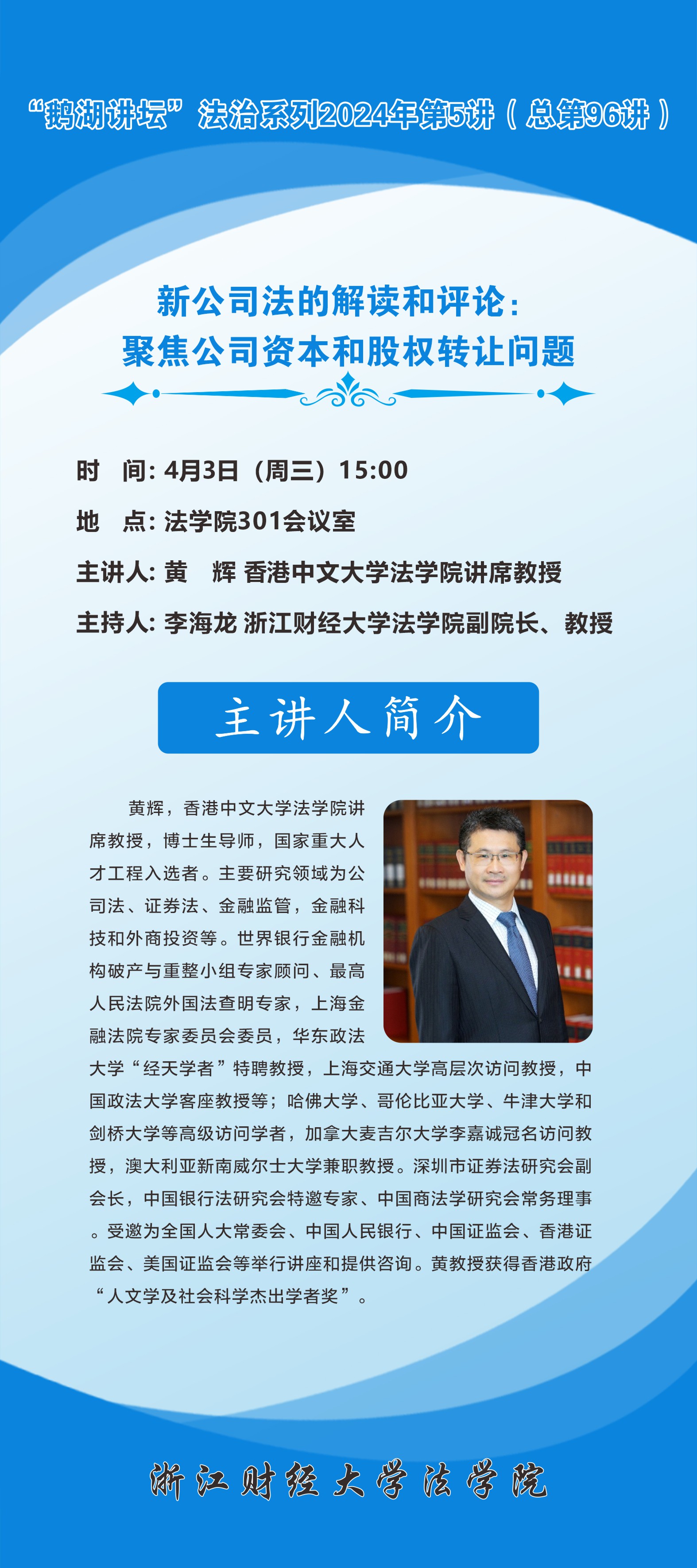 “鹅湖讲坛”法治系列2024年第5讲(总第96讲)香港中文大学黄辉教授