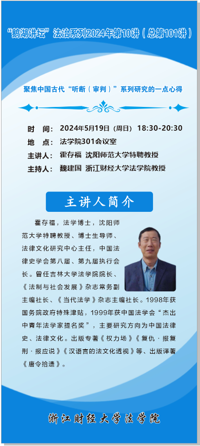 “鹅湖讲坛”法治系列2024年第10讲(总第101讲)沈阳师范大学霍存福教授